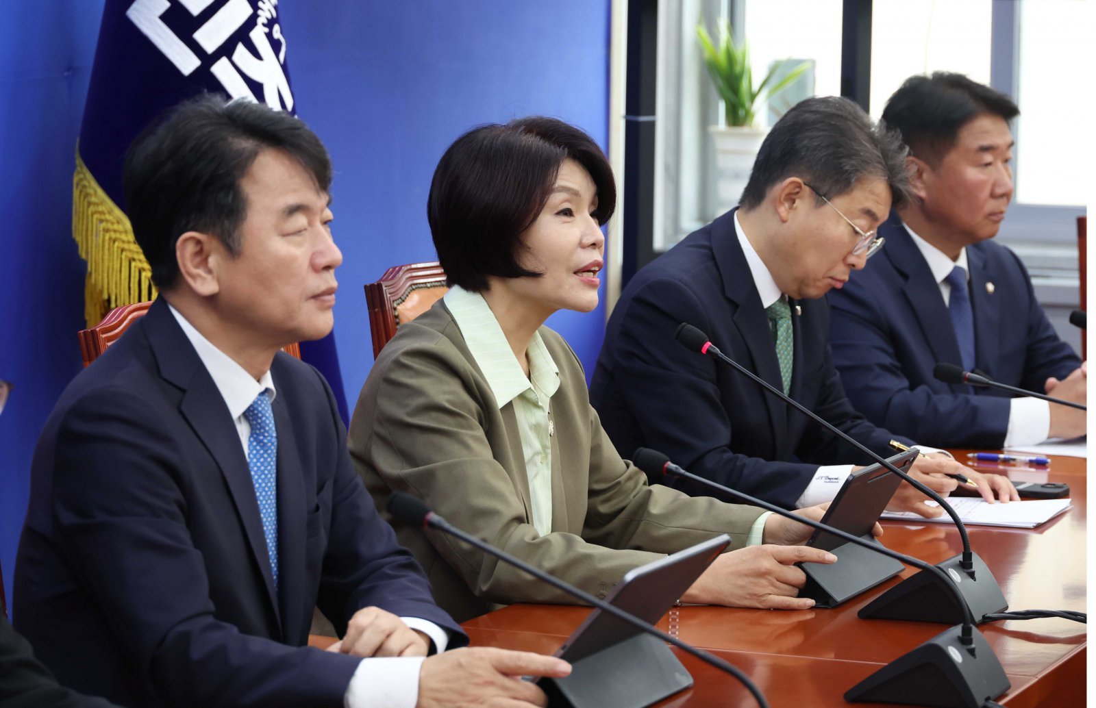 한정애 더불어민주당 정책위의장이 21일 오전 서울 여의도 국회에서 열린 정책조정회의에서 발언을 하고 있다. 2025.10.21. 서울=뉴시스대통령실과 정부, 민주당 일부 인사들이 이미 고가 아파트를 보유하고 있다는 논란에 대해선 “그것은 메신저 공격 형태라 부동산 대책의 본질을 봤으면 한다”고 반박했다.