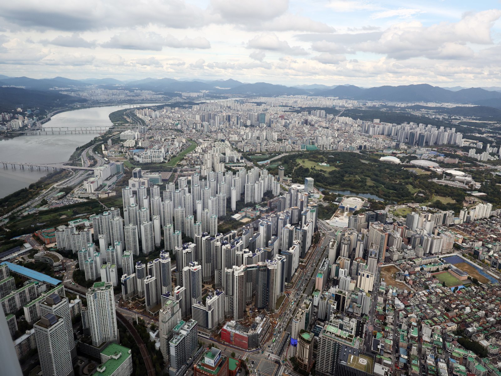 정부가 15일 부동산 관계장관회의를 열고 ‘주택시장 안정화 대책’을 확정·발표했다. 사진은 이날 서울 송파구 롯데월드타워에서 바라본 아파트 단지. 2025.10.15. 뉴스1