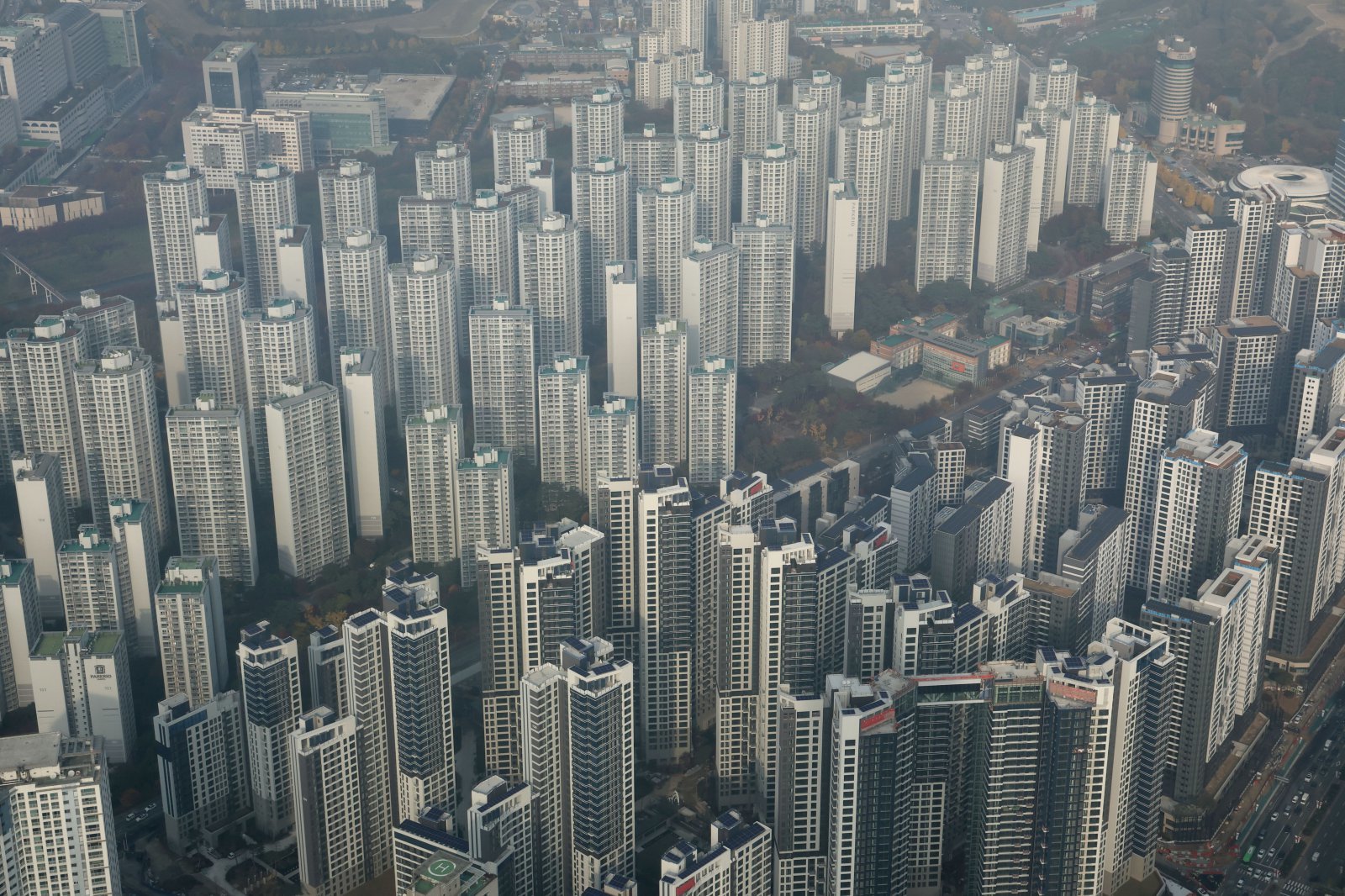10·15 부동산 대책 시행 이후 서울 아파트 평균 매매 가격 상승세가 2주 연속 둔화한 것으로 나타났다. 6일 한국부동산원이 발표한 11월 1주(11월3일 기준) 주간 아파트 가격동향에 따르면 서울 아파트 매매가격 지수는 직전 주(0.23%) 대비 0.04% 줄어든 0.19%를 기록했다. 한편 경기도 전체(0.11%)로는 상승 폭이 직전 주 대비 0.01%포인트 줄었지만 규제를 피해 간 일부 지역은 상승 폭이 커지며 풍선 효과도 나타났다. 사진은 이날 서울 송파구 롯데월드타워에서 바라본 서울 도심 아파트 단지. 2025.11.6.뉴스1전문가들은 청년들의 이런 투자 열기가 부동산 가격 상승기에 놓인 개인으로서는 어쩔 수 없는 결정이라고 보고 있다. 김 명예교수는 “지금의 영끌 투자는 청년들의 마지막 몸부림이라고 볼 수 있다”며 “청년이든 중년이든 살기 위해서는 집이 필요한데 집값이 너무 올라 본인 소득으로는 집을 마련할 방법이 없으니 한번에 큰돈을 노리는 것”이라고 했다.