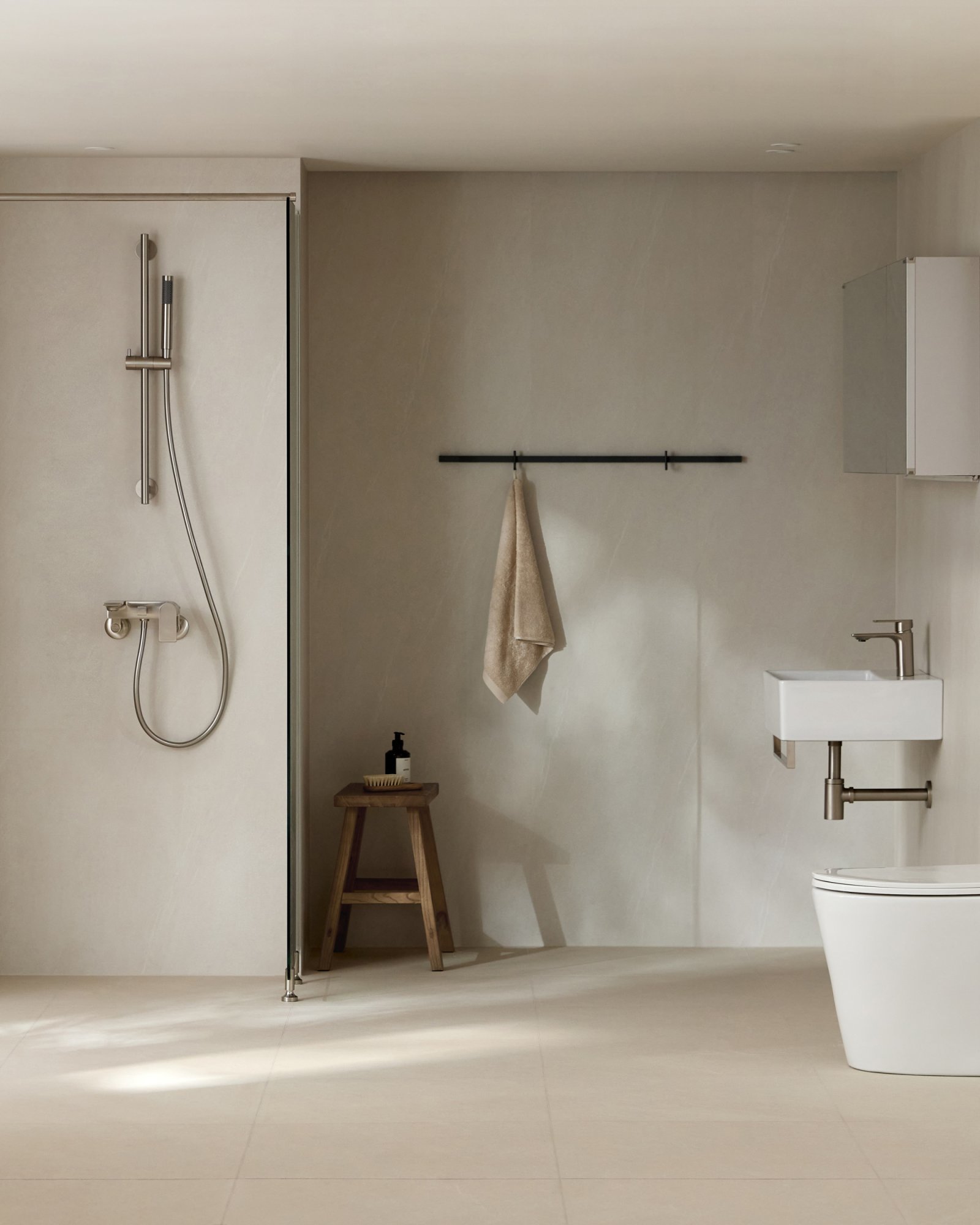 바닥재로 적용되는 ‘누보핏 타일’은 기존 욕실 자재 대비 내구성과 보행감을 강화했으며 미끄럼 저항 최고 등급(DP5)을 획득해 안전성을 높였다. 항균 기능도 강화돼 욕실 내 곰팡이 번식을 억제한다.