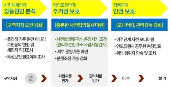 시는 △사업계획단계(정비사업구역 지정) △협의조정단계(건축물 처분) △집행단계(이주와 철거) 3단계로 나눠 실행할 예정이다.