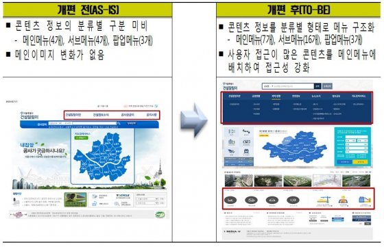 사이트 이용자들의 방문자 수, 방문 유형 등 웹 로그를 분석해 사용자 접근이 많은 콘텐츠를 메인화면에 배치하는 등 접근성을 강화했다. 콘텐츠는 7개 메인메뉴, 16개 서브메뉴, 3개의 팝업메뉴로 구성됐다.