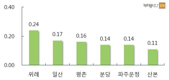 신도시 주간 매매가격 변동률(자료제공:부동산114)신도시는 △위례(0.24%) △일산(0.17%) △평촌(0.16%) △분당(0.14%) △파주운정(0.14%) 순으로 올랐다. 위례는 매도인들이 매물을 거둬들이며 매도자 우위시장을 보이고 있고, 일산은 중소형 아파트 위주로 투자자들의 발길이 이어졌다. 평촌은 가을 이사철이 시작되자 내 집 마련수요가 움직였고, 분당은 야탑동 매화공무원1단지와 수내동 양지5단지한양이 500만~1000만 원가량 상승했다.