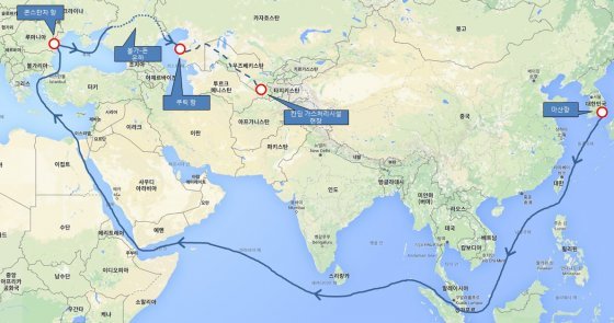 현대엔지니어링은 지난 6월 8일 마산항을 기점으로 중량물 운송을 시작해 ‘이집트 수에즈 운하’, ‘루마니아 콘스탄차항’, ‘러시아의 볼가-돈 운하’, ‘카자흐스탄 쿠릭항’, ‘우즈베키스탄 칸딤 현장’에 이르기까지 112일간의 운송 작전을 성공적으로 마쳤다.