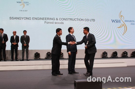 SFORA 현장 현장소장 김응주 부장(오른쪽)이 지난달 31일 열린 SHARP 어워드에서 안전상을 수상하고 있다. 쌍용건설 제공쌍용건설 관계자는 “싱가포르에서만 6500만 인시, 전세계 현장에서 약 1억3000만 인시 무재해를 이어가는 등 세계 무재해 대기록을 새롭게 쓰고 있다”며 “세계적 수준의 안전관리 능력을 바탕으로 해외건설 강자 자리를 지켜나가겠다”고 말했다.