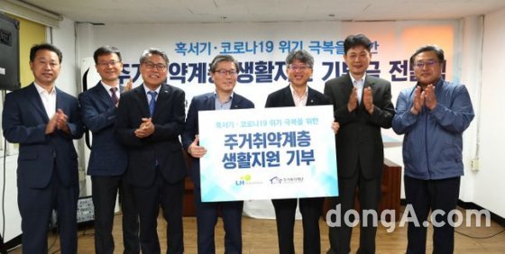 한국토지주택공사(이하 LH)는 16일 대전쪽방상담소에서 매입임대주택 거주 취약계층 생활지원을 위해 주거복지재단에 성금 6000만 원을 기부했다고 밝혔다.