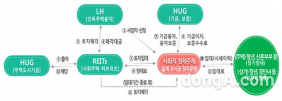 선정된 사업자는 주택도시기금이 출자해 설립한 리츠로부터 15년(최대 20년)간 토지를 임차하고 건축비 등 제비용은 HUG 기금융자 및 PF보증으로 조달, 의무임대기간이 경과하면 해당 토지를 매입할 수 있다.