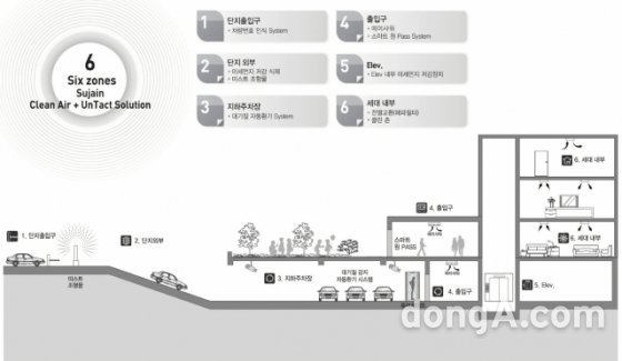 이번 수자인스마트홈1.0은 단지 내 출입구부터 세대 내부까지 청정 주거환경을 만드는 미세먼지 차단 및 저감 시스템과 코로나19 감염 예방 구축이 핵심이다.