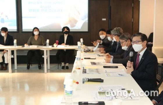 11일 개최된 제2차 LH 국민공감위원회 전체회의에서 변창흠 LH 사장(사진 맨 오른쪽)이 발언하고 있다. LH 제공한국토지주택공사(이하 LH)는 서울 중구 소재 ‘페이지 명동’에서 제2차 LH 국민공감위원회 전체회의를 개최했다고 11일 밝혔다.