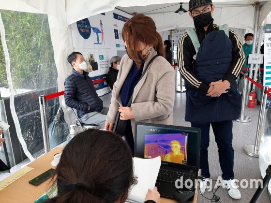 현장에서는 본보기집 입장 시 외부에 마련된 부스에서 마스크 확인과 발열체크를 위한 열화상 카메라 촬영, 손소독제 사용, 예약 확인을 거친다. 특히 내부 입장 시 2차 소독을 위해 터널형 전신 소독기와 소독제가 도포된 발판을 이용해야 하며, 키오스크를 이용한 방문자 명단 작성 후 방역지침을 안내하고 있다.