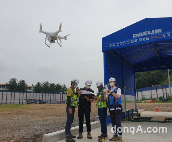 건설 현장에서 측량은 가장 기본적인 작업이다. 작업 범위와 공사 진행 상황을 확인하기 위해서 수시로 이루어진다. 하지만 사람이 일일이 수작업으로 측량을 진행하다 보니 업무 효율이 낮았다. 이를 개선하기 위해서 대림산업은 드론을 활용해 측량을 실시하고 있다. 드론이 측량한 자료는 대림산업 기술개발원 드론 플랫폼에서 3차원 영상으로 구현돼 다양한 정보와 함께 협력업체에 제공된다.