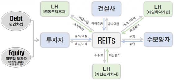 주택개발리츠는 민간사업자가 설립한 리츠에서 LH 공동주택용지 등을 매입 및 건설사와 공동으로 주택을 건설·분양하는 사업방식이다. 미분양주택에 대해서는 LH가 매입확약을 제공해 사업리스크를 분담한다.