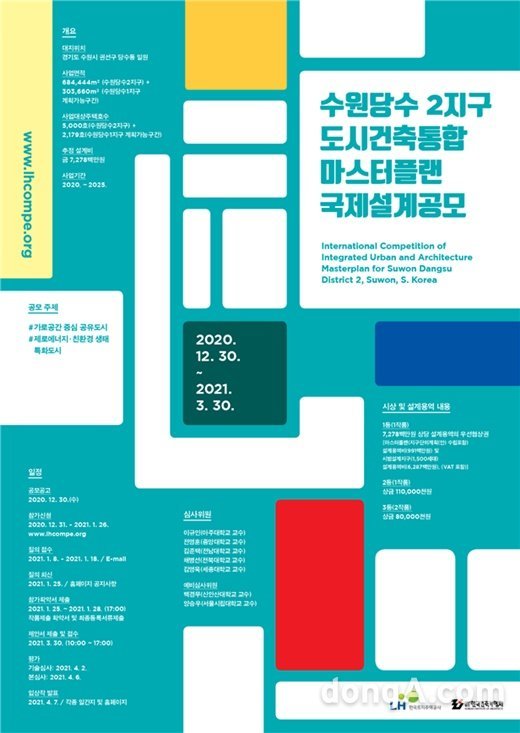 한국토지주택공사(이하 LH)는 수원당수2지구를 대상으로 ‘도시건축통합 국제 마스터플랜 설계공모’를 추진한다고 30일 밝혔다.