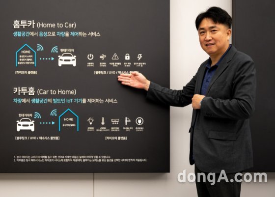 이번에 선보인 서비스는 홈투카·카투홈서비스는 빌트인 음성인식 시스템인 ‘보이스홈’을 이용해 집에서 음성명령으로 자동차 시동, 문잠금, 경적, 비상등, 온도 조절, 전기차 충전 등을 원격 제어할 수 있는 서비스다. 8월 입주를 시작하는 서울 강남구 ‘디에이치 자이 개포’부터 적용할 예정이다.