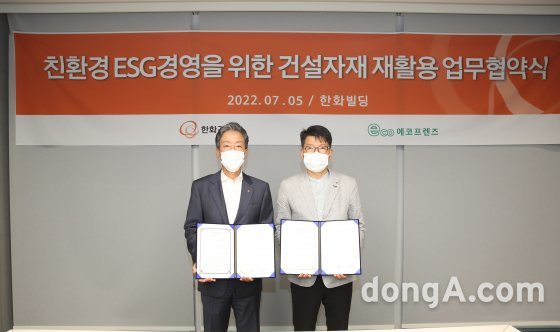 한화건설, 건설현장 폐기 자재 재활용 업무 협약 체결