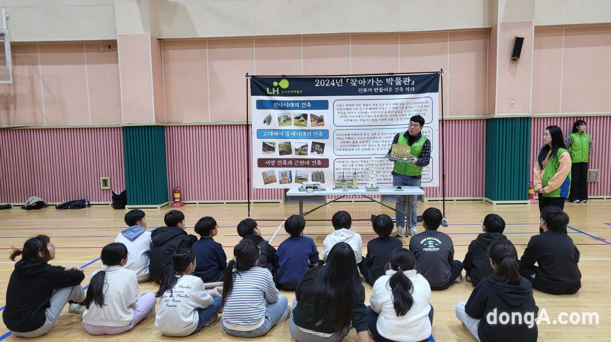 지난해에는 ‘우리 전통건축 이야기’를 주제로 김해 영운초등학교를 찾아 아이들을 대상으로 전통 건축 문화 교육을 진행했다. LH 임직원들이 보조 강사로 참여해 교육 진행을 도왔다.
