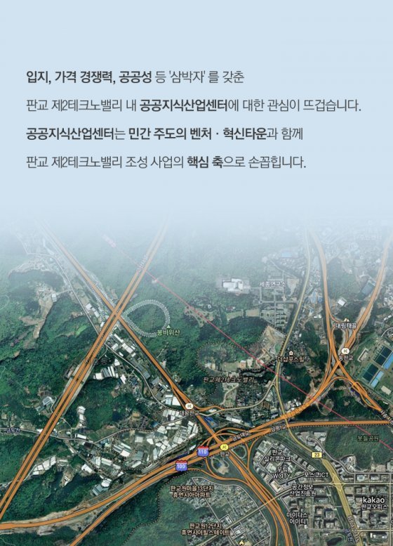 입지,가격 경쟁력, 공공성 등 ‘삼박자’를 갖춘 판교 제2테크노밸리 내 공공지식산업센터에 대한 관심이 뜨겁습니다. 공공지식산업센터는 민간 주도의 벤처·혁신타운과 함께 판교 제2테크노밸리 조성 사업의 핵심 축으로 손꼽힙니다.