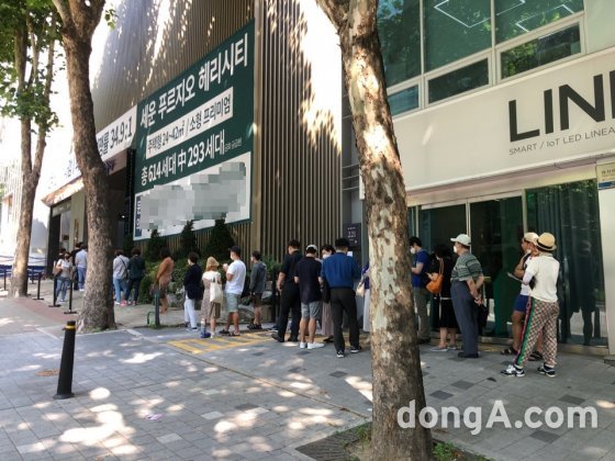 이날 개시한 선착순 공급은 중도금대출 부적격 당첨에 대한 일부 잔여가구 분양분으로 구성됐다. 잔여가구 선착순 공급 소식을 접한 수요자들이 오전부터 강남구 테헤란로 소재 견본주택에서 긴 줄을 형성했다.