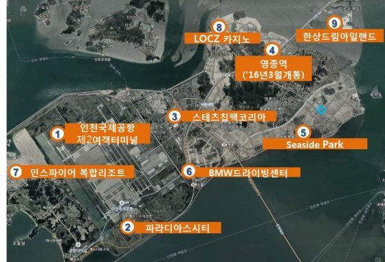 여기에 인천국제공항 제2여객터미널 9만 명, 파라다이스시티 1단계 사업 1만2000명, 스태츠칩팩코리아 3000명 등 내년에만 10만 명의 인구가 영종도로 유입될 것으로 전망된다.