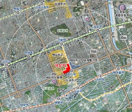 대상지는 강남구 역삼동 756번지 일대 한티역 인접지역으로 지금까지 청담·도곡아파트지구에 포함됐던 곳이다. 아파트지구 개발기본계획상 개발 잔여지와 주구중심용지로 구성됐다.