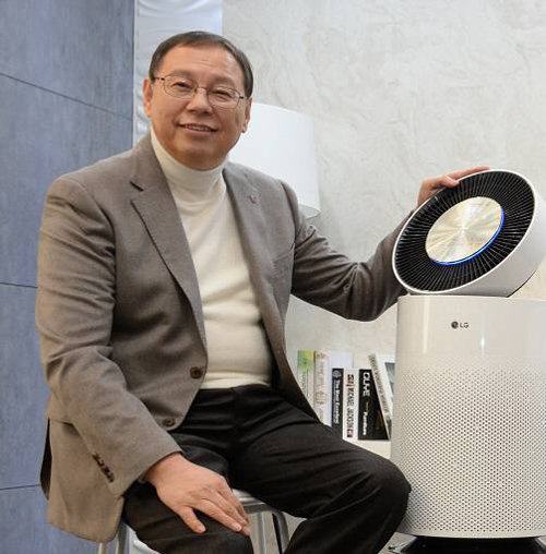 공식석상에서는 처음으로 입은 터틀넥을 만지며 공기청정기 신제품 발표회를 시작했다. 변화를 수용하고 즐길 줄 아는 조 부회장의