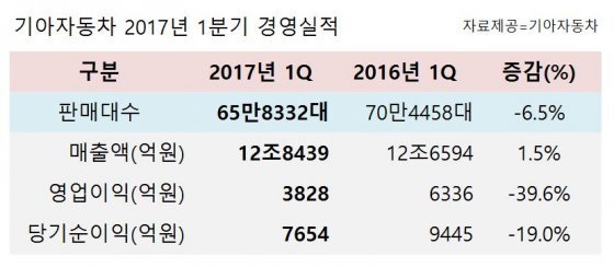 기아차, 1분기 영업이익 39.6% 폭락… 美·中 부진에 환율 악재까지