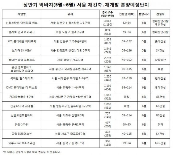 상반기 막바지 서울 분양시장이 재건축·재개발 단지 공급에 힘입어 활기를 되찾을 전망이다.