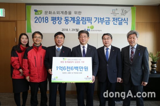 한국토지주택공사(이하 LH)는 29일 2018 평창올림픽 입장권 구입을 위한 기부금을 전달하고 청소년 캠프도 운영한다고 밝혔다.