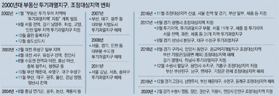 20여 년 전에도 비슷한 일이 벌어졌었다. 외환위기 이후 부양책이 효과를 내는 상황에서 증시 침체와 저금리 상황이 맞물리면서 2000년대 초 부동산 시장이 들썩이기 시작했다. 그러자 정부는 2002년 1월 “부동산 투기 우려 지역에 ‘투기과열지역’을 지정하겠다”고 발표했다. 5월에는 서울 전역을 투기과열지구로 지정하겠다는 방침을 밝혔고, 9월에는 서울 전역을 포함해 경기, 인천 일부 지역을 투기과열지구로 지정했다.