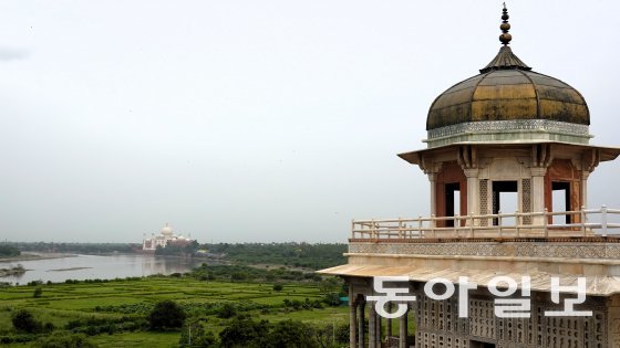 샤자한 황제가 갇혔던 아그라 성 ‘포로의 탑’(오른쪽)에서 바라본 야무나 강변의 타지마할.● 노예 왕이 세운 쿠트브미나르
