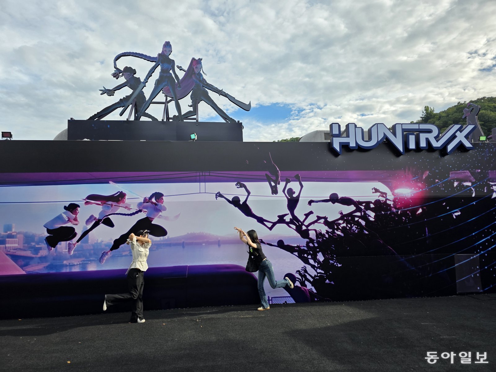 용인 에버랜드에 26일 개장한 ‘케이팝 데몬 헌터스’ 테마존. 애니메이션이 현실에서 펼쳐지는 듯 ‘사자보이즈’와 ‘헌트릭스’ 존에 들어가 기념사진을 찍고 게임도 즐길 수 있다.케데헌은 외국인의 서울 관광 패턴을 바꾸고 있다. 그동안은 경복궁 청계천 종로 홍대 같은 구도심과 젊은 상권 중심이었다면, 지금은 잠실주경기장과 롯데타워, 뚝섬한강공원과 청담대교, 경동시장, 낙산공원, 국립중앙박물관 등 케데헌에 나온 곳을 성지순례하듯 여행한다.