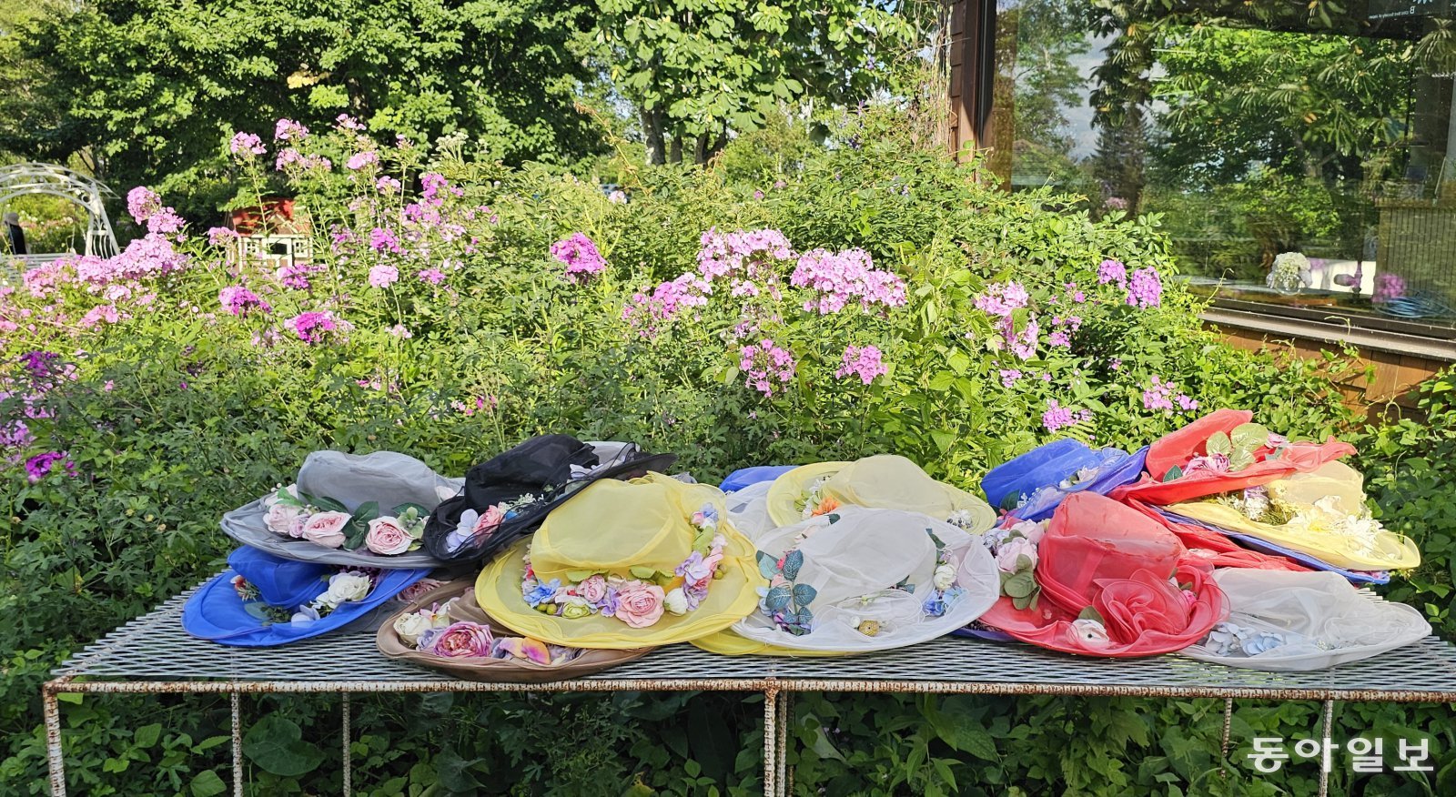 방문객들이 써볼 수 있게 둔 꽃무늬 모자들. 김선미 기자 kimsunmi@donga.com
