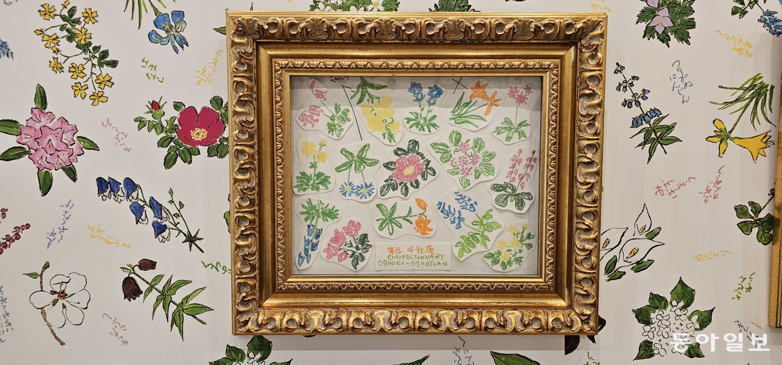 롯카노모리의 갤러리에 전시된 롯카테이 제과회사 포장지 꽃 그림. 김선미 기자 kimsunmi@donga.com