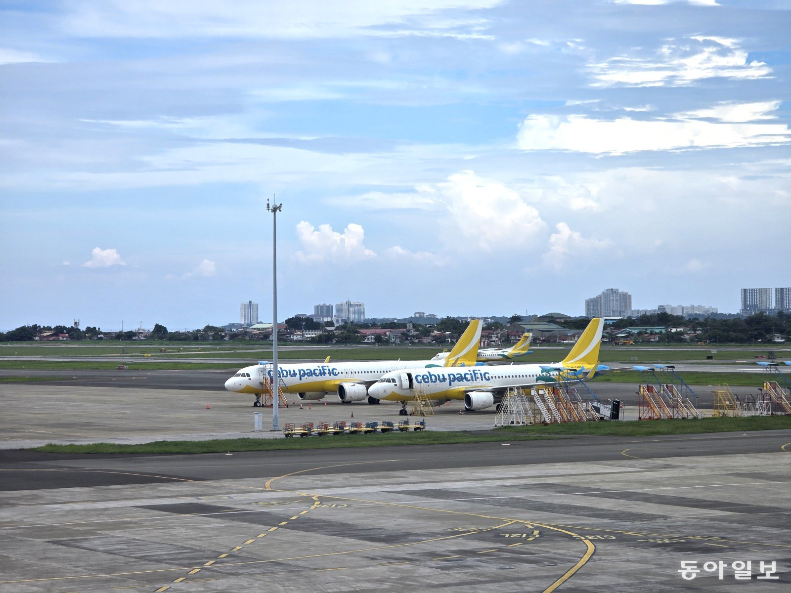 막탄-세부국제공항 활주로에 계류 중인 세부퍼시픽 항공. 전승훈 기자 raphy@donga.com