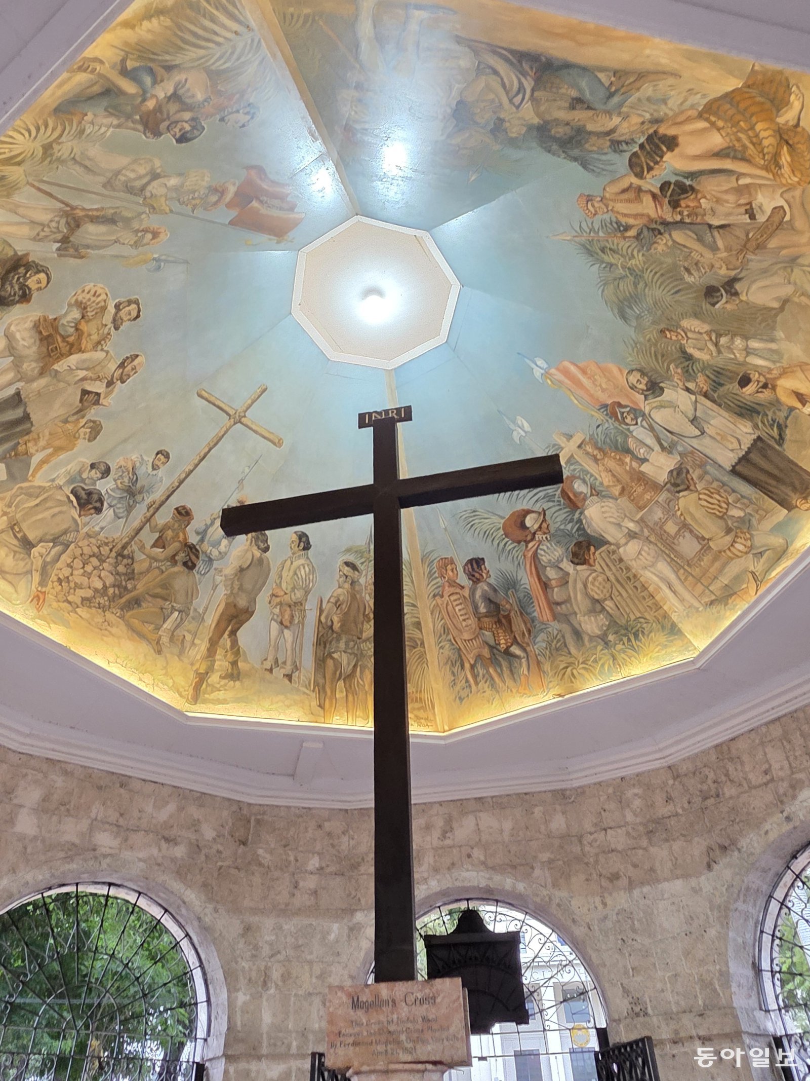 1521년 마젤란이 세부 해안가에 세웠던 나무 십자가. 전승훈 기자 raphy@donga.com산페드로 요새에서 멀지 않은 산토니뇨 성당 앞에 있는 팔각형 예배당 안에는 500년 세월을 버텨온 ‘마젤란의 십자가’가 서 있다. 천정 벽화에는 마젤란이 세부 해변에 십자가를 세우는 그림이 그려져 있다. 오늘날 필리핀이 아시아 최대의 가톨릭 국가가 된 것은 바로 이 나무 십자가에서 비롯된 것이다.