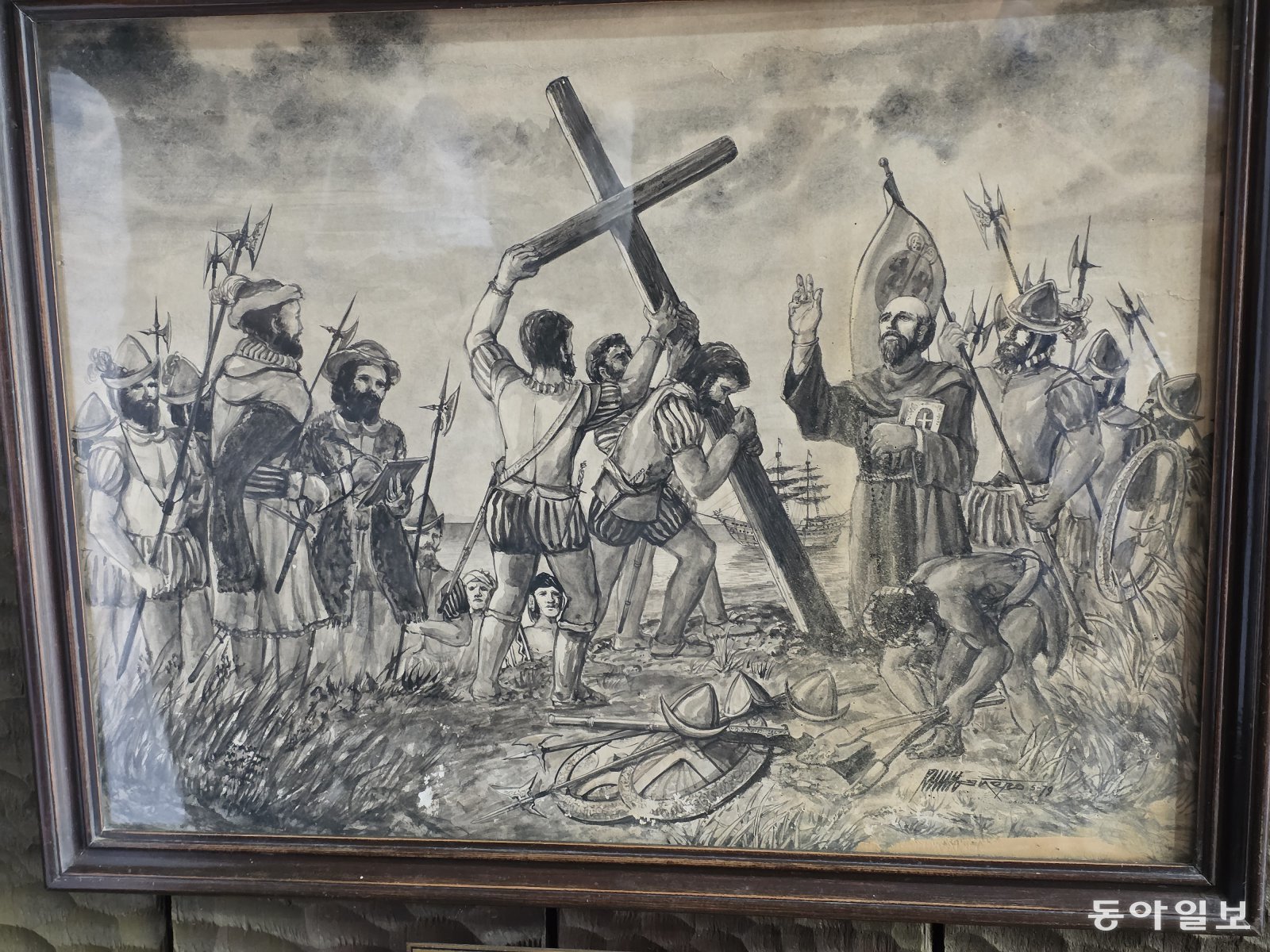 마젤란 원정대가 필리핀 세부에서 미사를 드리고 십자가를 세우는 모습을 그린 그림. 전승훈 기자 raphy@donga.com