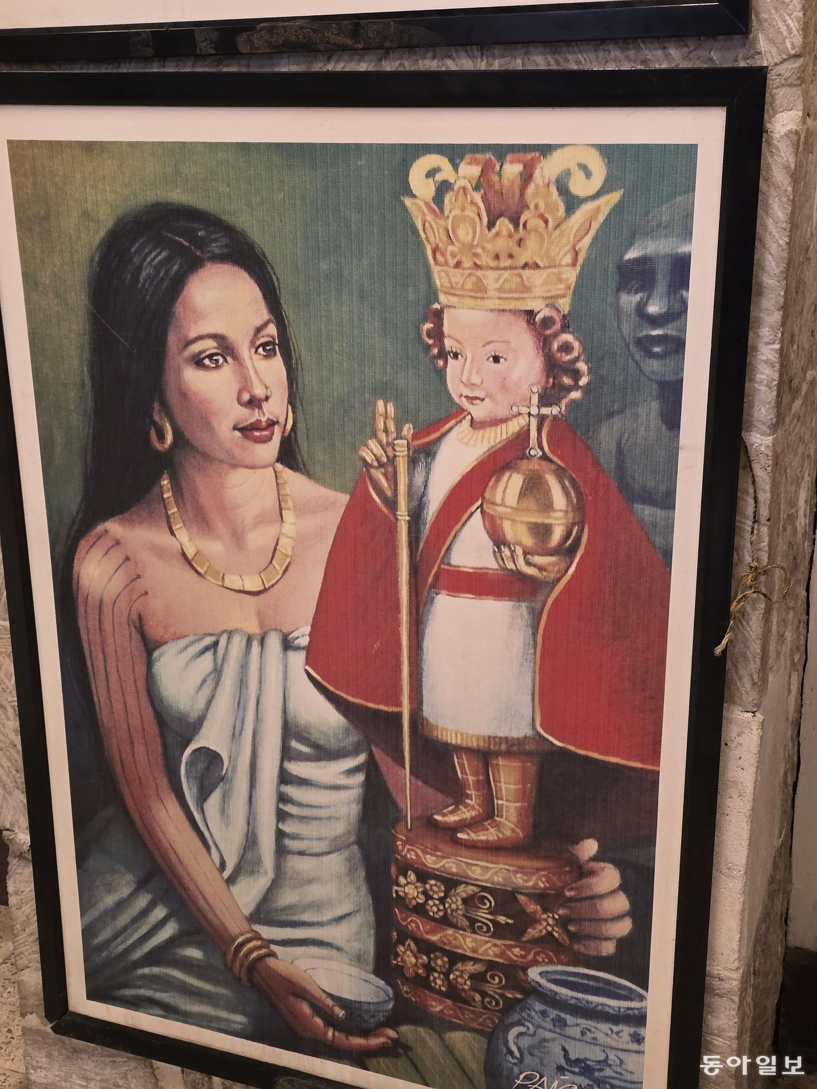 마젤란이 선물한 아기예수상(산토 니뇨)을 들고 있는 세부의 왕비. 전승훈 기자 raphy@donga.com첫 번째 주인공은 마젤란과 친교를 맺고 기독교를 받아들였던 세부의 라자 후마본 왕과 왕비다. 마젤란은 왕비에게 세례 선물로 ‘산토니뇨(아기 예수)’ 상을 주었다. 산토니뇨는 필리핀을 수호하는 수호성인으로, 필리핀 전역의 성당과 집, 가게마다 모셔져 있다.