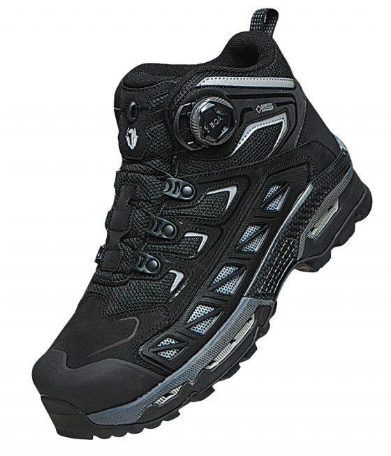 블랙야크 ‘그리프 D GTX’ 미드컷 등산화.‘그리프 D GTX’는 한국의 산악 지형에 특화된 아웃솔을 적용해 뛰어난 접지력으로 산행을 마지막까지 안전하게 즐길 수 있는 미드컷 등산화다. 블랙야크의 노하우가 접목된 고어텍스 서라운드 공법을 통해 기존 등산화 대비 뛰어난 투습력으로 하산할 때까지 쾌적하게 신을 수 있다. 여기에 다이얼을 감으면 빠르고 쉽게, 그리고 정교한 피팅이 가능한 보아 핏 다이얼 시스템이 적용됐다. 오솔라이트 인솔을 사용해 투습 및 항균 기능을 발휘한다. 끈 형태를 선호한다면 ‘그리프 S GTX’도 있다.