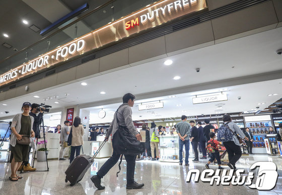 인천공항에 입점한 면세점 모습 © 뉴스18일 오후 2시45분 기준 항공 대장주 대한항공은 전일대비 1000원(3.32%)오른 3만1100원에 거래되고 있다. 대한항공 모회사 한진칼도 1100원(1.95%) 올랐다. 아시아나항공 역시 400원(1.82%) 올라 2만2350원을 기록하고 있다.