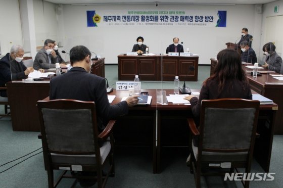 14일 제주도의회 제1소회의실에서 열린 ‘제주지역 전통시장 활성화를 위한 관광 매력성 향상 방안 정책토론회’에서 주제발표에 나선 김형길 ㈔제주관광문화산업진흥원장은 “제주를 찾은 국내외 관광객이 좀 더 적극적으로 전통시장에 방문할 수 있도록 전통시장별로 특화해야 한다”며 이같이 밝혔다.