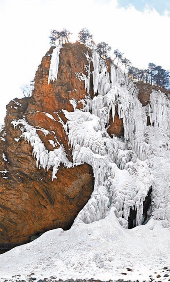조선 중기의 문신 홍태유(1672∼1715)는 ‘유설악기(遊雪嶽記)’에서 “금강산의 명성은 중국까지 퍼졌으나 설악산의 승경은 우리나라 사람이라도 아는 사람이 적으니, 산 가운데 은자”라고 했다. 그는 특히 수렴동 계곡의 폭포가 발처럼 흘러내리고, 뿜어내기도 하고, 누워서 흐르기도 하는 변화무쌍한 모습을 노래했다. 겨울의 수렴동 계곡에도 얼어붙은 물살의 무늬와 모양은 그대로였다.