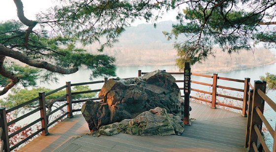 남한강과 달천이 합류하는 지점인 탄금대의 ‘열두대’ 바위.
