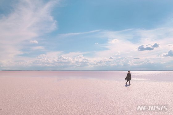 소금 호수가 핑크빛을 띠게 되는 이유는 물속에 살고 있는 조류 때문이다. 여름철에 온도가 올라가면 붉은빛을 띠는 이 조류의 개체 수가 늘어나 호수가 분홍빛으로 나타난다.