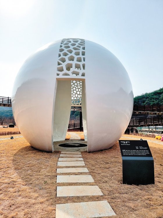 청양 알품스 공원 조형물. 청양군 제공장곡사 입구 장곡천 수변 생태 체험 공원 ‘청양 알품스’는 14일 개장해 손님을 맞고 있다. 알품스는 장곡천 수변생태체험파크 사업을 통해 새롭게 조성된 관광지다. 칠갑산을 상징하는 분수대와 아름다운 풍광의 양양이 초원, 청양 생태계를 의미하는 커다란 알 조형물, 이들 시설을 둥지처럼 감싸는 덱(Deck)길과 미로정원 등이 마련됐다. 청양군은 장곡사, 장승공원, 백제문화체험박물관, 백제체험관(가칭) 등으로 이어지는 장곡지구를 청양을 대표하는 관광지로 발전시킬 계획이다.