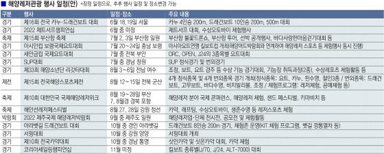 또한 해양 수도 부산에서 7월에 개최하는 ‘부산항 축제’에서는 부산항을 중심으로 관광, 공연, 전시 행사를 진행하며, 강원도 정선에서 8월에 개최될 예정인 ‘해안선레저페스티벌’에서는 카약, 래프팅, 수상오토바이, 생존수영 등 각종 체험프로그램과 교육을 진행한다.