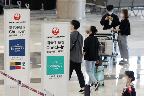 27일 서울 강서구 김포공항 국제선 출국장에서 일본 하네다행 여행객들이 출국 수속을 밟고 있다. 2022.9.27/뉴스1 ⓒ News1