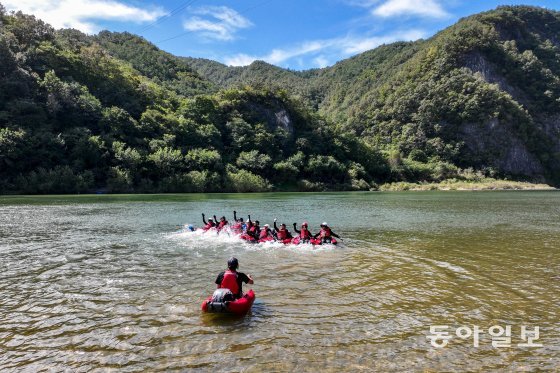 한반도 닮은꼴 지형을 한바퀴 도는 뗏목도 휴전선 넘어 북쪽으로 향할 수는 없었다. 공교롭게도 이 곳부터는 바닥이 얕아지고 급류가 형성돼 있어 안전상 더 이상 나갈 수가 없었기 때문이다.