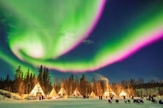 캐나다 북부 북위 60도 아북극권은 타원형의 고위도 오로라 지대로, 광공해가 적어 오로라 관측의 최적지로 꼽힌다. 북극광을 볼 수 있는 세계 최고의 장소는 연간 평균 240박 동안 오로라가 관측되는 노스웨스트 준주(Northwest Territories)다. 그 중에서도 ‘옐로나이프’는 미국항공우주국(NASA)이 선정한 세계 최고의 오로라 관측지다. 3박을 하면 95%, 4박을 하면 98%의 확률로 오로라를 만날 수 있다.