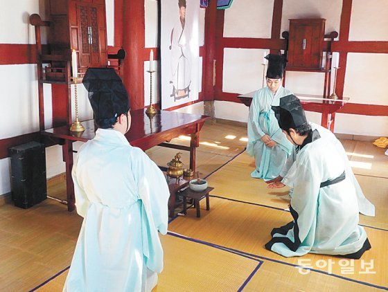 유네스코 세계문화유산에 등재된 남계서원의 사당에서 의관을 정제한 관광객들이 직접 제례를 올리며 선비문화를 체험하고 있다.