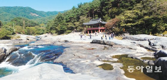 수백 명도 너끈히 품을 수 있는 너럭바위 사이의 맑은 못이 야밤의 달을 희롱하는 모습을 볼 수 있다고 해서 이름 붙여진 농월정(弄月亭·함양군 화림동 계곡). 인기 TV 드라마 ‘환혼’의 촬영지다.